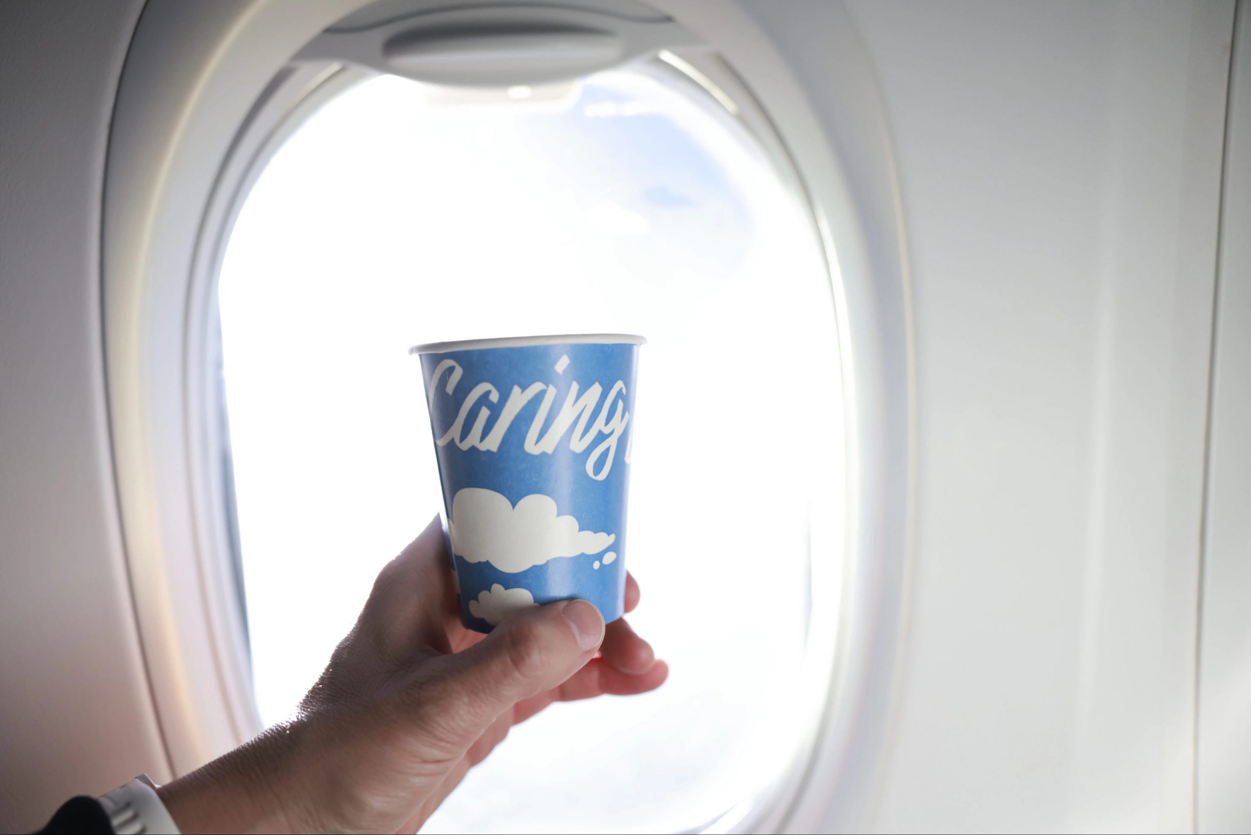 Plastic cups? We sent ‘em packing. As we fly toward a more sustainable future, we’re proud to eliminate plastic cups on board. By partnering with Boxed Water™ and serving beverages in recyclable paper cups, we’re saving more than 2.2 million pounds of plastic from landfills a year!