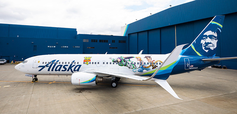Alaska Airlines gets ‘animated’ with themed aircraft featuring artwork from Disney and Pixar’s Toy Story 4.