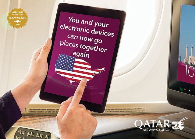 Qatar Airways, the World’s Best Airline as voted by Skytrax 2017, is delighted to confirm it has been approved by the U.S. Department of Homeland Security to permit passengers to carry personal electronic items on board U.S.-bound flights, departing from its hub Hamad International Airport in Doha, Qatar.