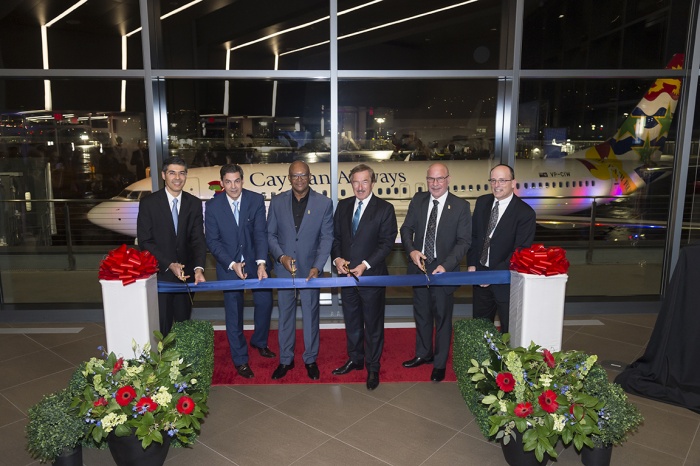 Image – Pictured at the ribbon cutting ceremony in Seattle, Washington, are (from left): Kishore Korde, Air Lease Corporation; Ricardo Cavero, Boeing; Phillip Rankin, Cayman Airways; Steve Hazy, Air Lease Corporation; Fabian Whorms, Cayman Airways; and Andrew Zollers, Boeing