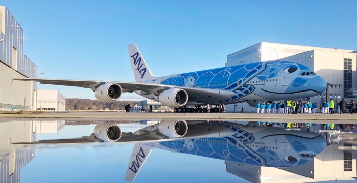 The first A380 for All Nippon Airways (ANA) has rolled out of the Airbus paint shop in Hamburg, Germany, bearing the airline’s distinctive and unique Hawaiian Green Sea Turtle livery.