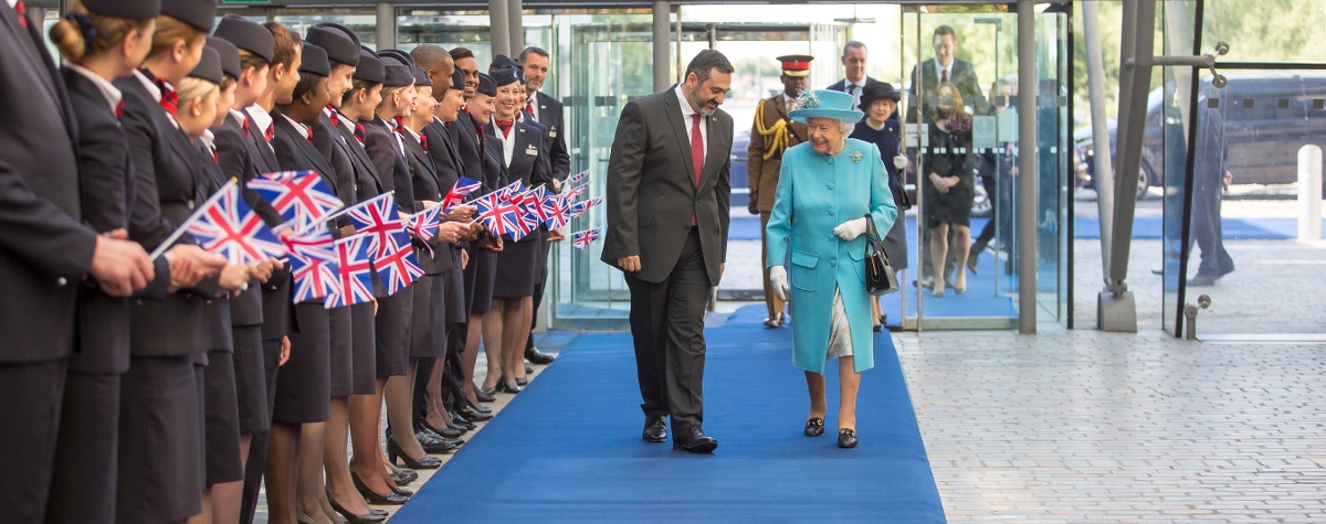 Her Majesty The Queen Visits British Airways HQ to Mark Airlines Centenary