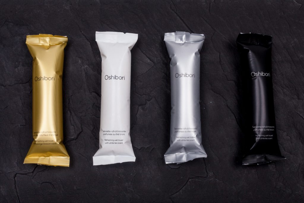Oshibori Concept International produce airline refreshing wet towels complete with personalized packaging (Oshibori). The Oshibori Concept towel is Made in France and follow the ISO norm 22716. Inside the Oshibori Concept refreshing wet towel, you also can personalize the scent. All of Oshibori Concept refreshing wet towels are under the control of a cosmetic engineer. Oshibori Concept International is the first company who produce an Oshibori (refreshing wet towel) as a cosmetic product, as it might be since the beginning.