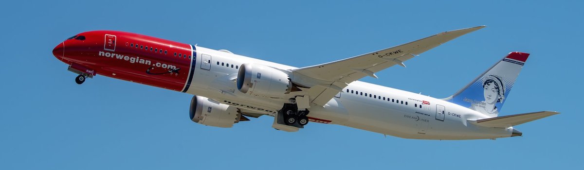 The Jane Austen tail fin Dreamliner aircraft operates Norwegian’s long-haul routes from London Gatwick including the airlines 12 nonstop routes to the USA and flights to Singapore and Buenos Aires.