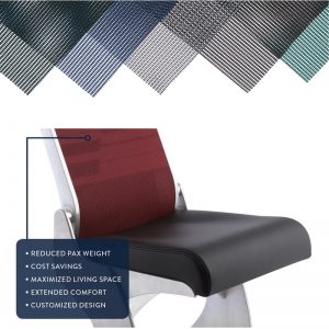 Our Fly-Right Seat Suspension Module reduces costs by eliminating the need for cushions and dress covers. It also eliminates the costs of spare cushions and covers and reduces the costs for labor and maintenance. In addition, Fly-Right generates immediate weight savings and greatly reduces manufacturing costs by combining the seat back into one SKU. The Fly-Right module is designed to be installed on a lightweight frame combined with an elastomer mesh to provide ergonomic geometry and ultimate comfort. The open mesh provides comfortable support as well as breathability and added space.