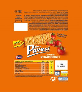 Gran Pavesi al Pomodoro e Formaggio are crackers that combine the simplest of Mediterranean flavours: tomatoes, Parmesan cheese, extra virgin olive oil.