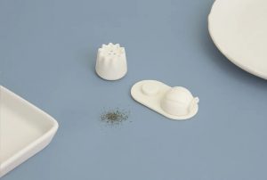 Business class salt and pepper set inspired by typical Hong Kong food, the har gaw and siu mai dim sum-shaped set is meant to be kept by passengers as a souvenir.