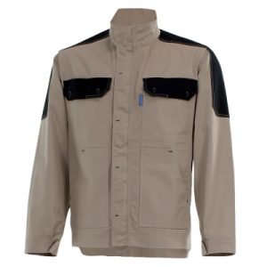 Stand collar with press stud closure | Plastic zip under tab | 2 chest patch pockets with flap fastenings | 1 phone pocket | 1 fastened inside pocket | 2 patch lower pockets | Back vents | Cuffs with press stud fastenings | Shoulder and sleeve panels | Longer back | Plastic haberdashery.
