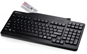 - Magnetic stripe reader: bidirectional swipe reader for all magnetic based cards and documents according to ISO 7810 and 7811 standards (credit and debit cards, customer and service cards)