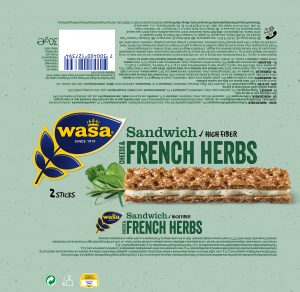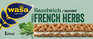 Wholemeal rye flour bread, flavoured with sesame seeds, filled with cream cheese and French herbs. The mono-portion is ideal to eat when away from home.