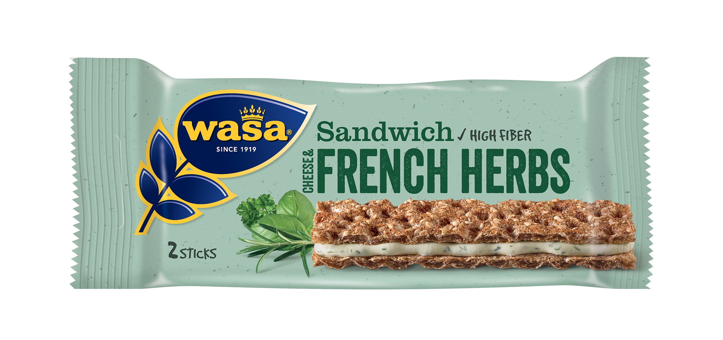 Wholemeal rye flour bread, flavoured with sesame seeds, filled with cream cheese and French herbs. The mono-portion is ideal to eat when away from home.