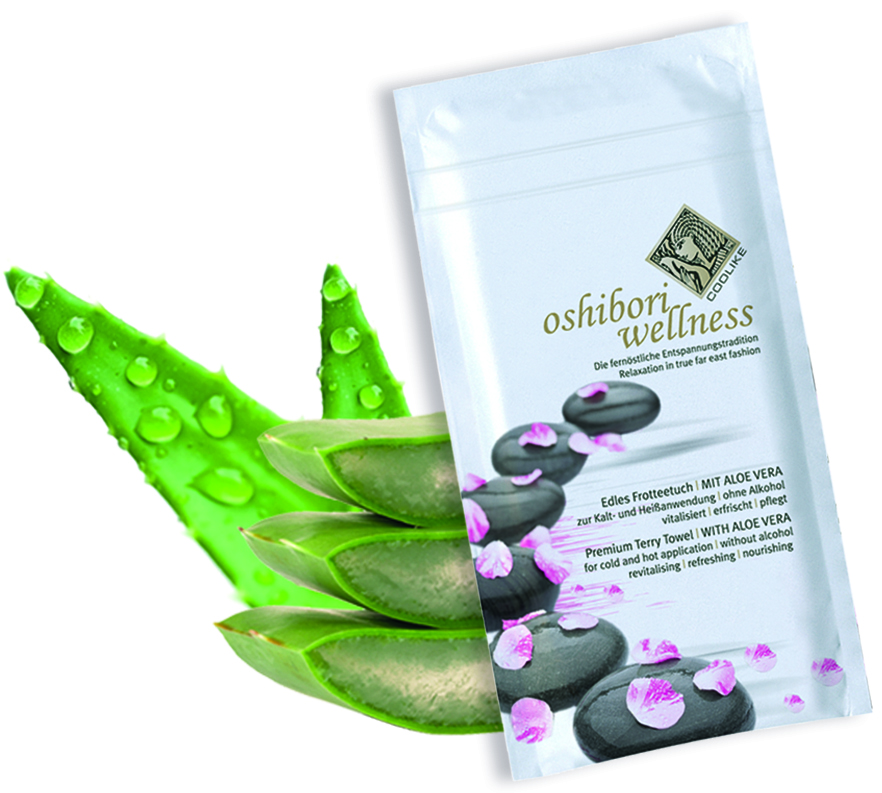 The nicely pre-moistened Oshibori cotton terry towel WITH VALUABLE ALOE VERA is usable everywhere and anytime to relax and refresh. Once opened, the product catches your senses.