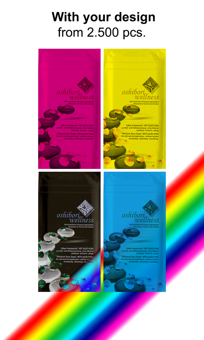 The special packaging protects the Oshibori towel from impurities and other external influences and keeps it fresh for minimum 24 months. With the first opening you can be sure nobody else has touched it before.