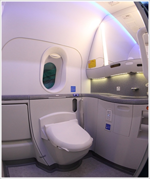 The lavatory has the unique characteristic of providing the only private area for passengers in the cabin. JAMCO devotes quality and functionality for creation of comfort and relaxing atmosphere in a limited space, while providing our customers consistent accomplished weight savings by advantageously using JAMCO’s core competence of Weight Saving Technology. As always, safety is the utmost important element of all aircraft equipments and JAMCO ensures all requirements are fully adhered to.