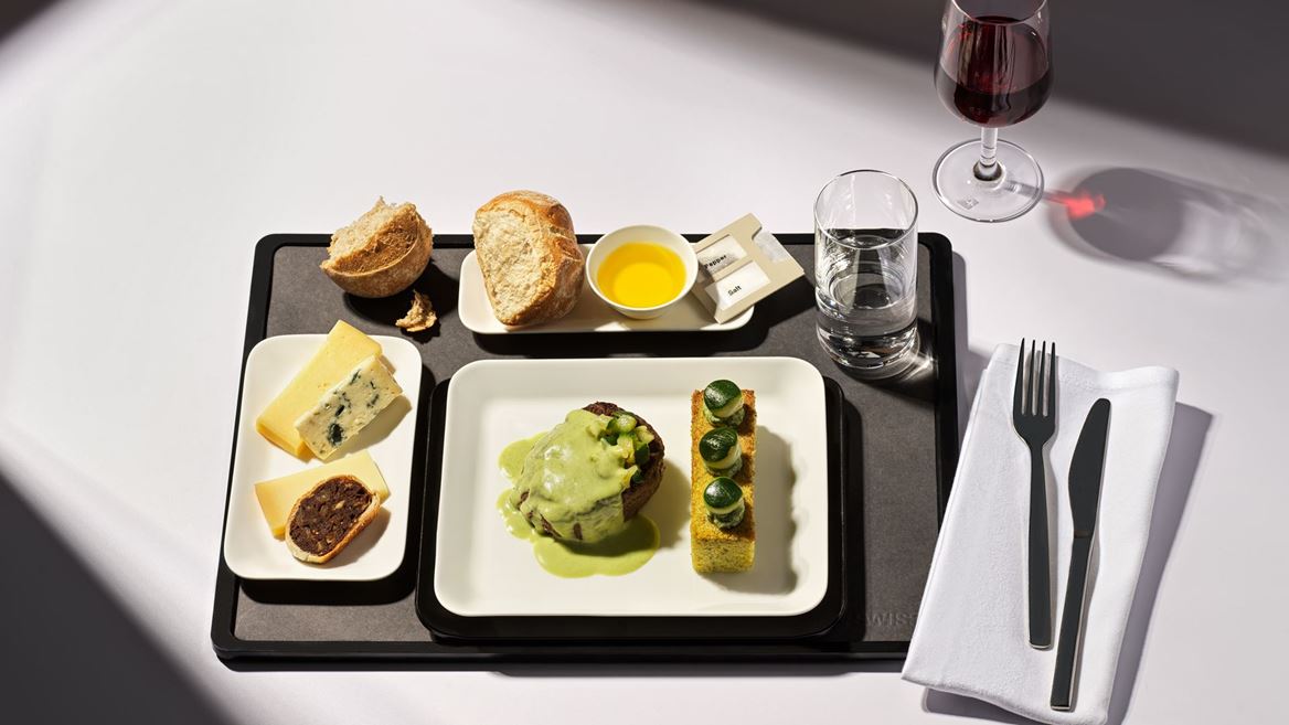 SWISS First customers can enjoy a starter of langoustine with tomato mousse, while for their main course Franck Giovannini has created a veal filet mignon served with conchiglioni pasta filled with aubergine caviar. For their main course, SWISS Business travellers can choose between a beef tenderloin served with pesto polenta or a grilled chicken breast accompanied by gnocchetti di Zita pasta. The SWISS Business offering is rounded off with a gourmet-style classic Vaudois dessert: an éclair with raspberries and caramelized pistachios.