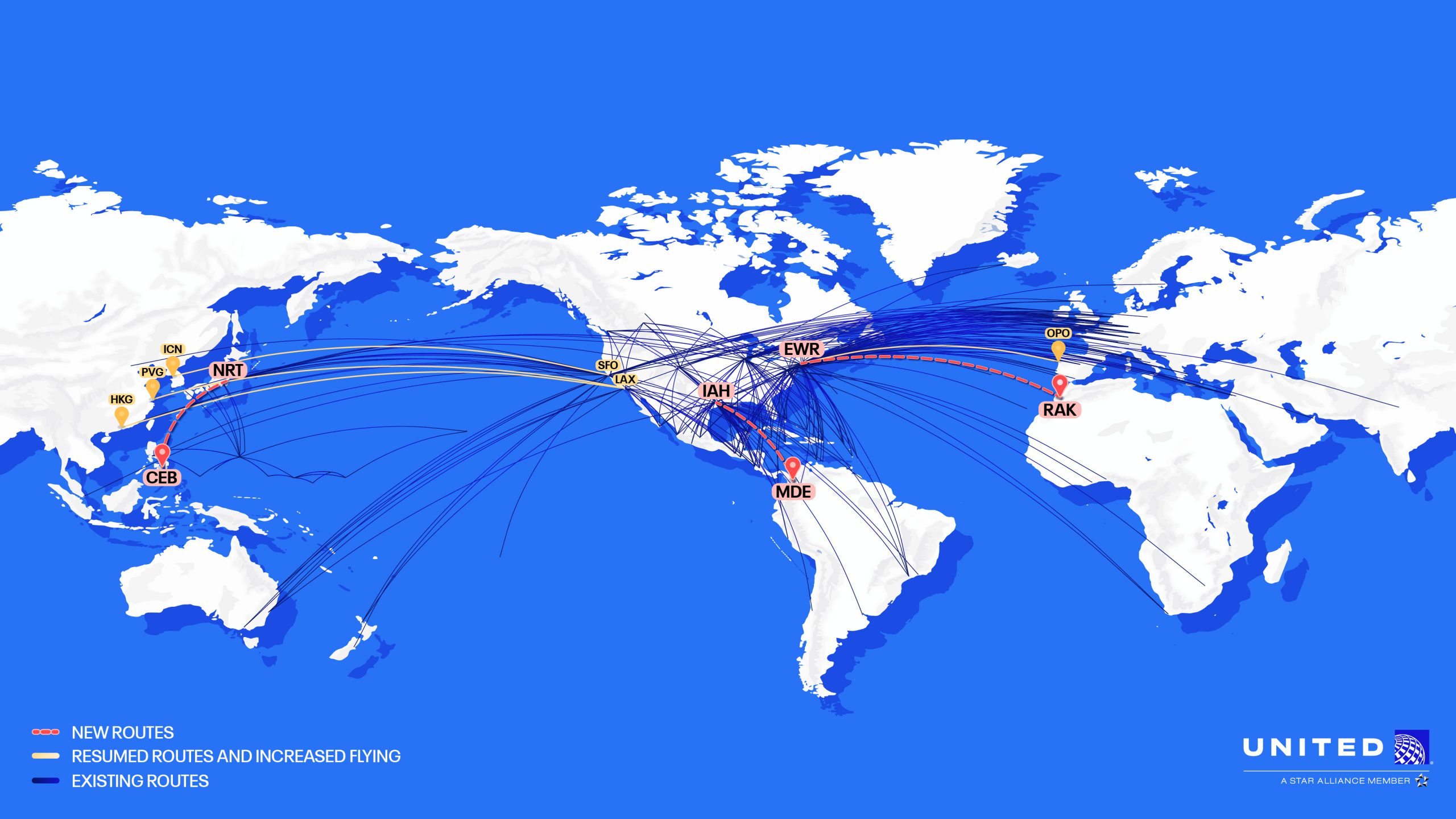 United have announced it is expanding its leading global route network, adding new non-stop flights between New York/Newark-Marrakesh, Morocco; Tokyo/Narita-Cebu, Philippines and Houston–Medellin, Colombia. United will also increase flying to popular destinations across the globe including Hong Kong; Seoul, South Korea and Porto, Portugal. Additionally, the airline will add four weekly flights between Los Angeles and Shanghai as the Chinese and U.S. governments recently agreed to increase flights between the two countries*.